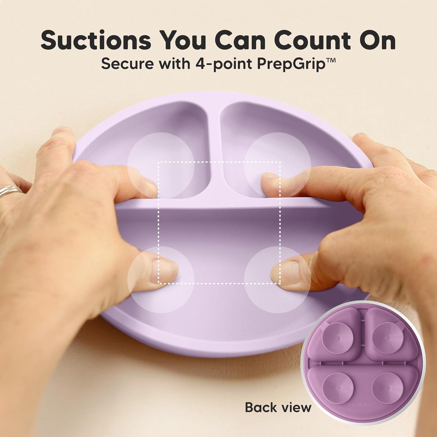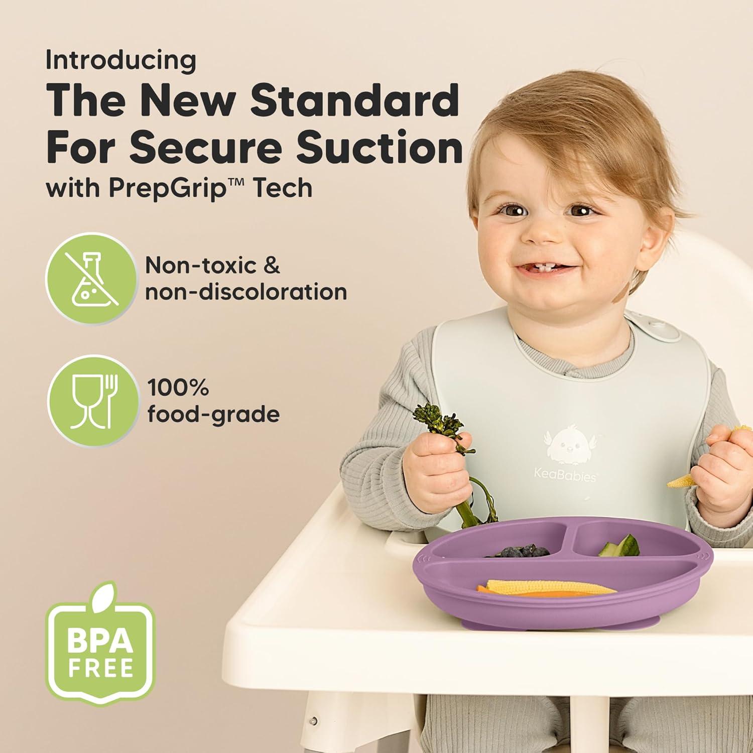 imageKeaBabies Suction Plates with Lids for Baby  3Pack 100 Silicone Toddler Plates with Suction Divided BPAFree Baby Led Weaning Essentials for Kids Dishwasher Microwave Safe Durable SlateAmethyst