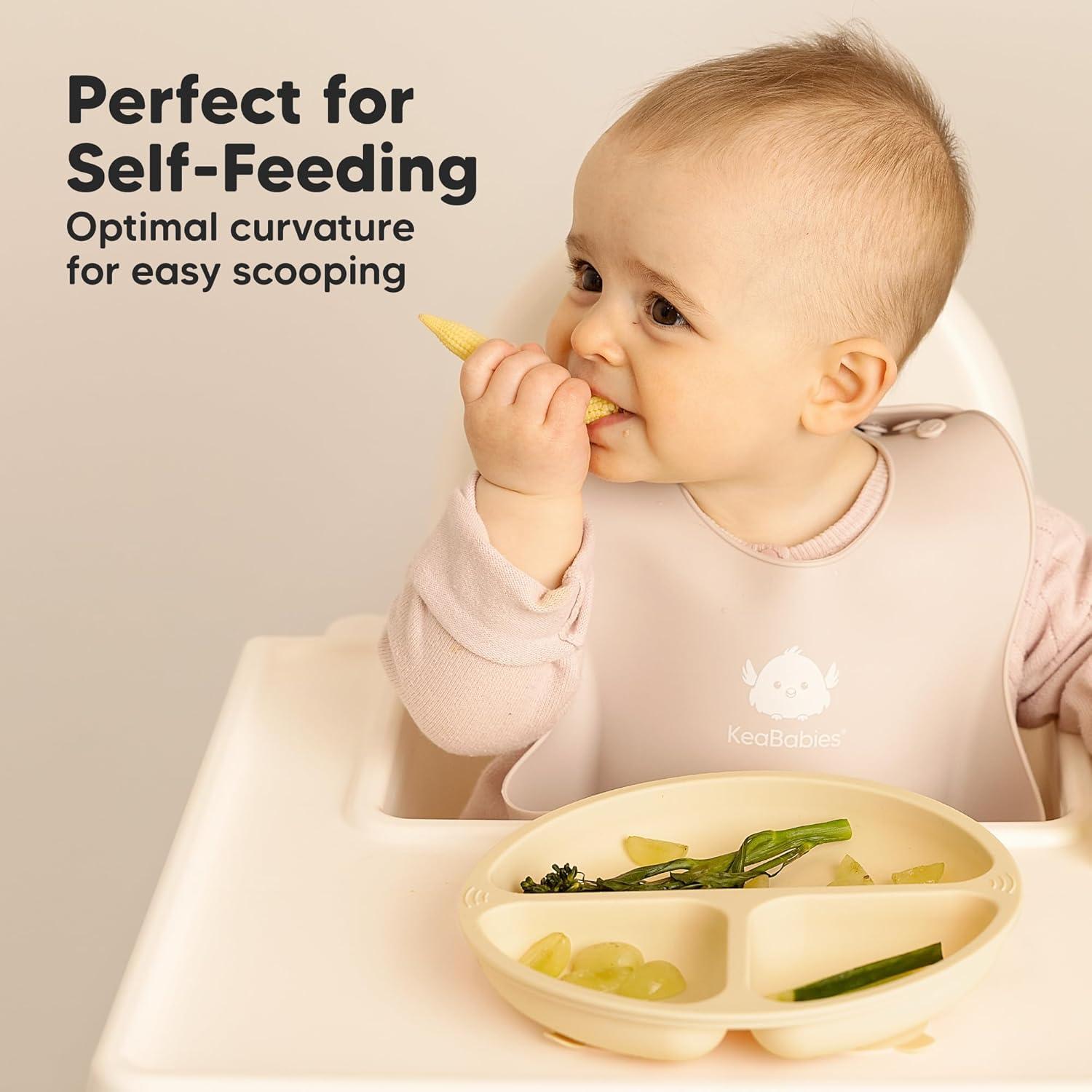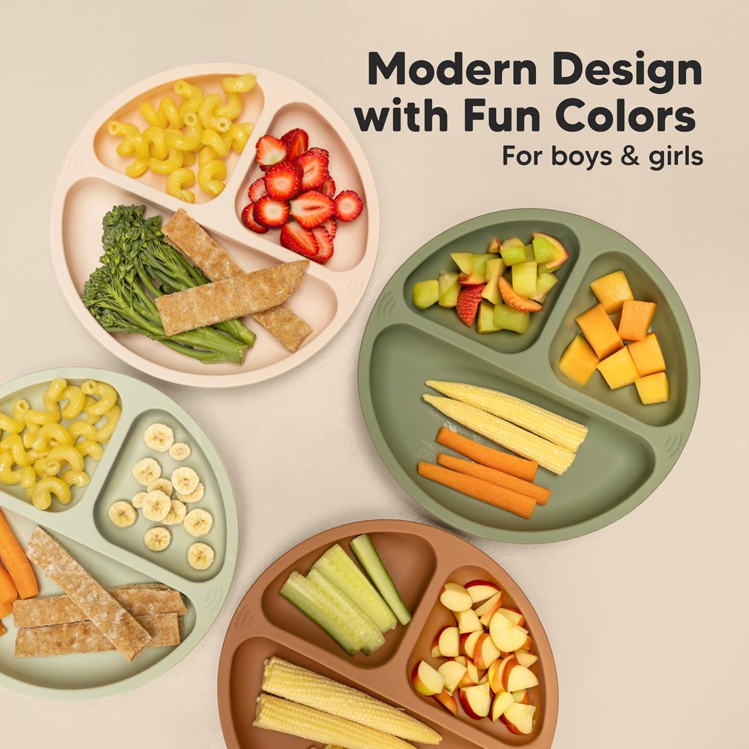 KeaBabies Suction Plates with Lids for Baby – 3-Pack 100% Silicone Toddler Plates with Suction, Divided, BPA-Free Baby Led Weaning Essentials for Kids, Dishwasher, Microwave Safe, Durable (Slate)(Amaze)