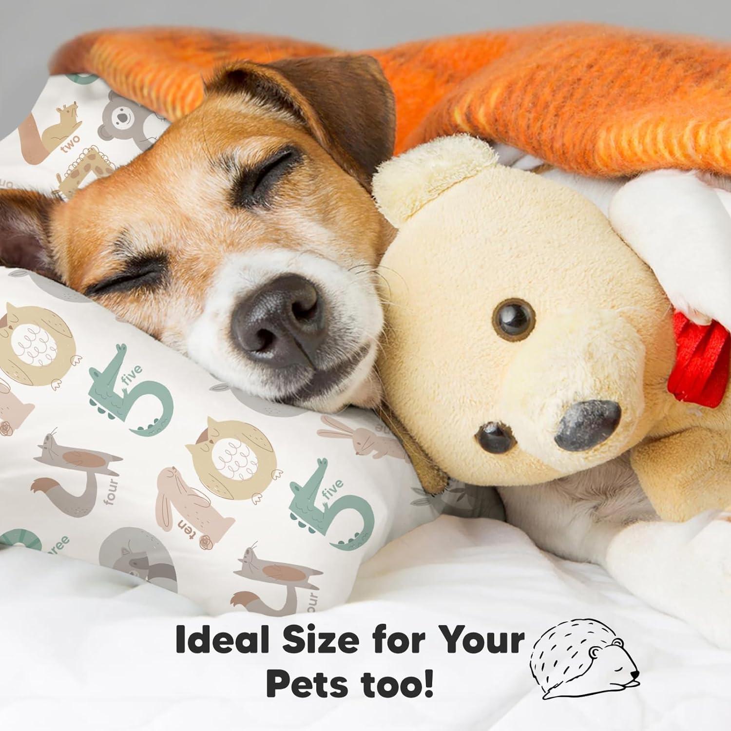KeaBabies Toddler Pillow with Pillowcase, Jumbo 14X20 – Soft Organic Cotton Toddler Pillows for Sleeping – Machine Washable – Perfect for Travel, Toddler Bed Set (Soft White)(Wild Count)