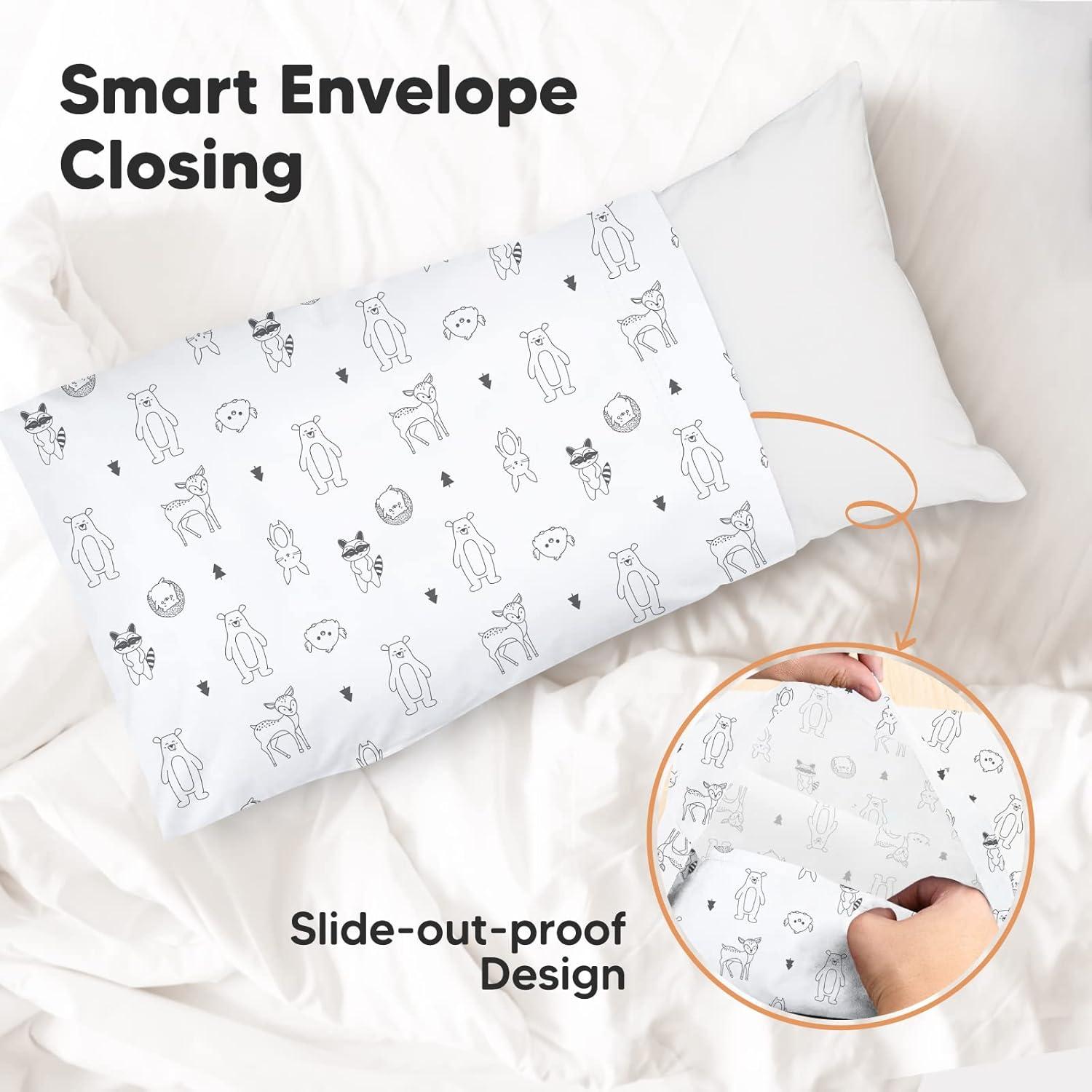 Toddler Pillow Cases 13 x 18 – Made of 100% natural soft and breathable cotton our pillowcase is suitable for all skin types including sensitive skin. Fits standard 13 X 18 inch toddler size pillows and comes with envelope closure to prevent pillow from sliding out of the pillow case.