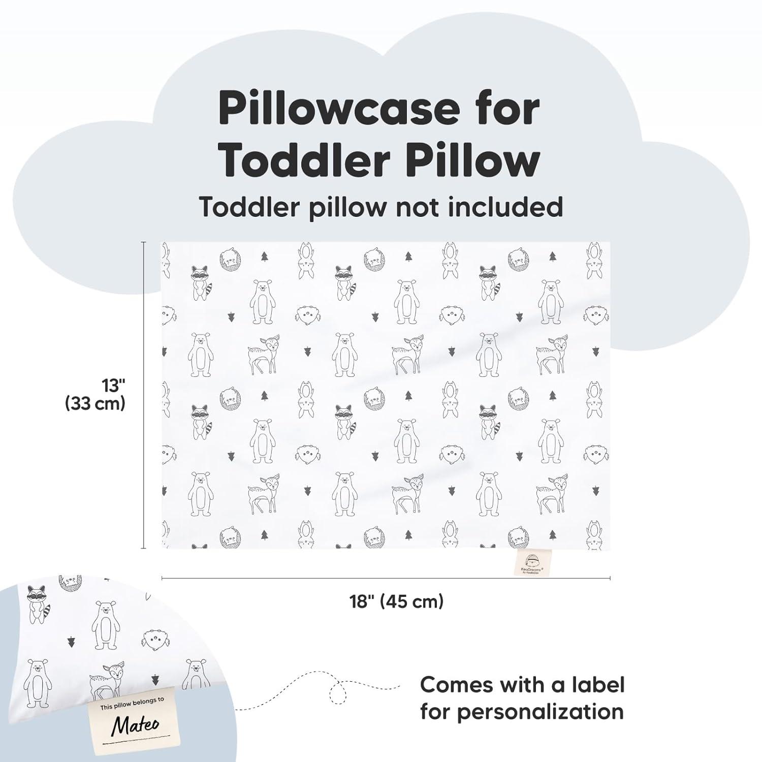 Pillow Sold Separately – Each pack comes with one 13X18 toddler pillowcase only. Purchase our KeaBabies toddler pillows separately. Search KeaBabies toddler pillow for more information.
