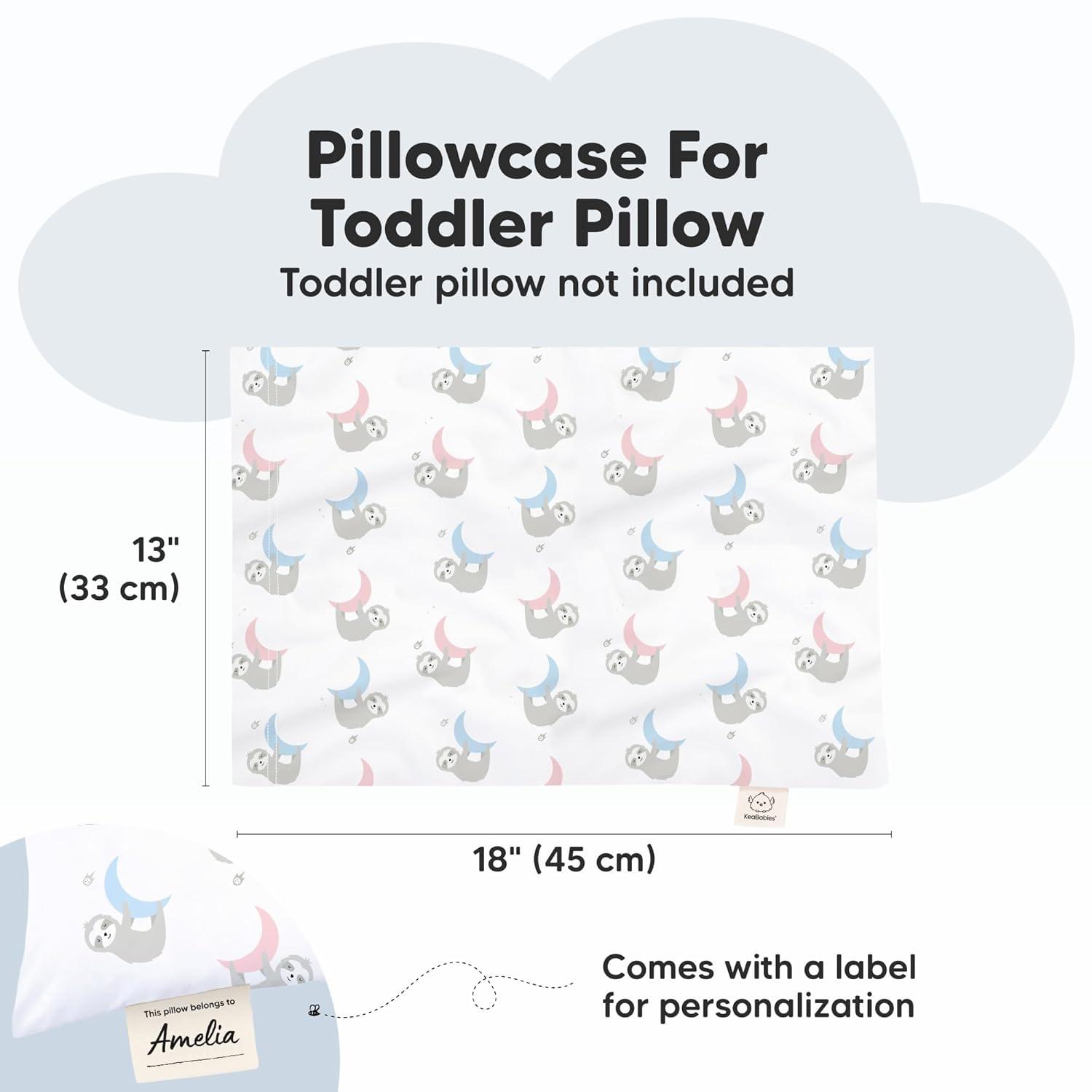KeaBabies Toddler Pillowcase 13"x18" - Organic Cotton Toddler Pillowcase for Kids, Boys, Girls, Soft & Durable Cotton Cover for Miniature Sleepy Pillows, Cute Colors, Pillow Sold Separately (Fantasy)(Moon Sloth)