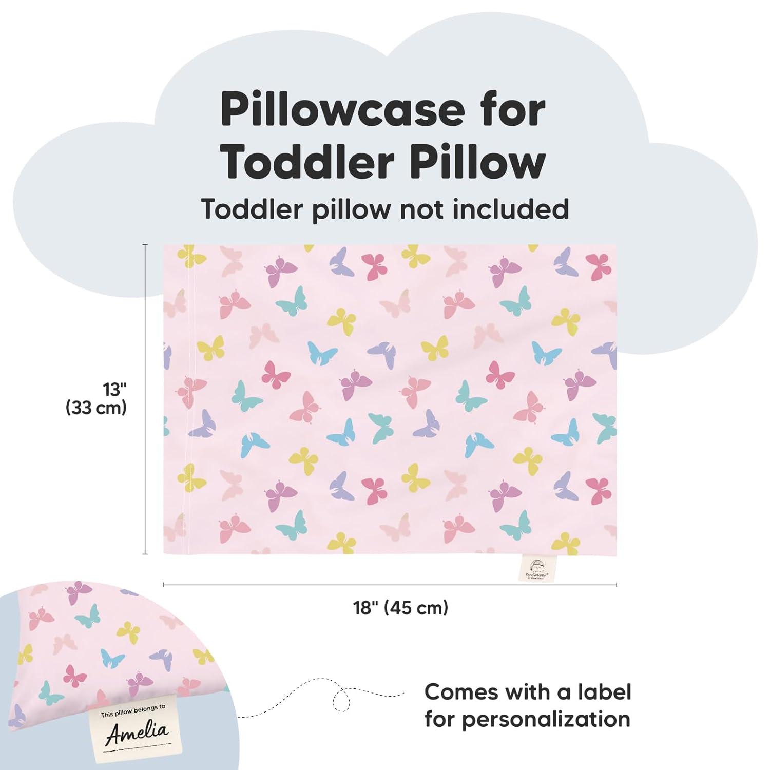 Pillow Sold Separately – Each pack comes with one 13X18 toddler pillowcase only. Purchase our KeaBabies toddler pillows separately. Search KeaBabies toddler pillow for more information.