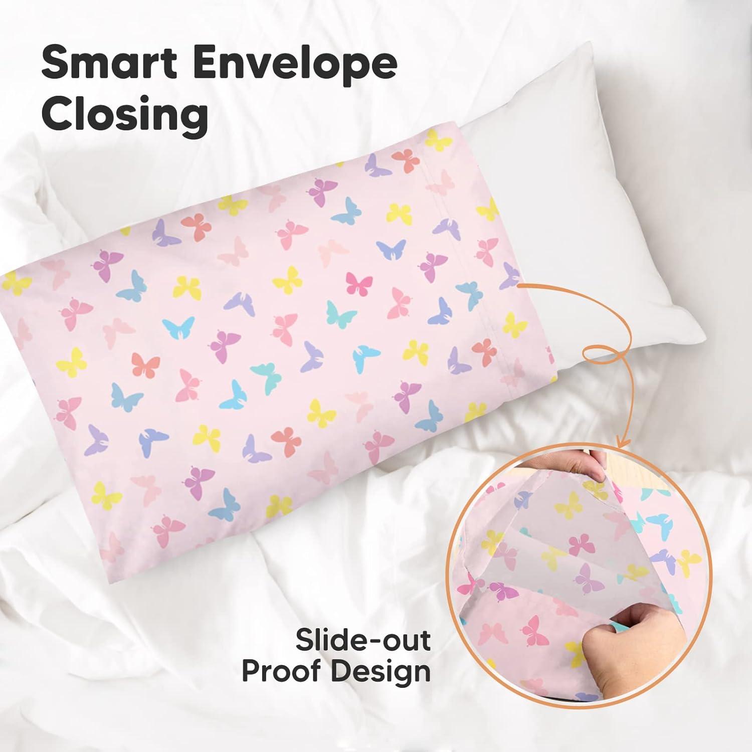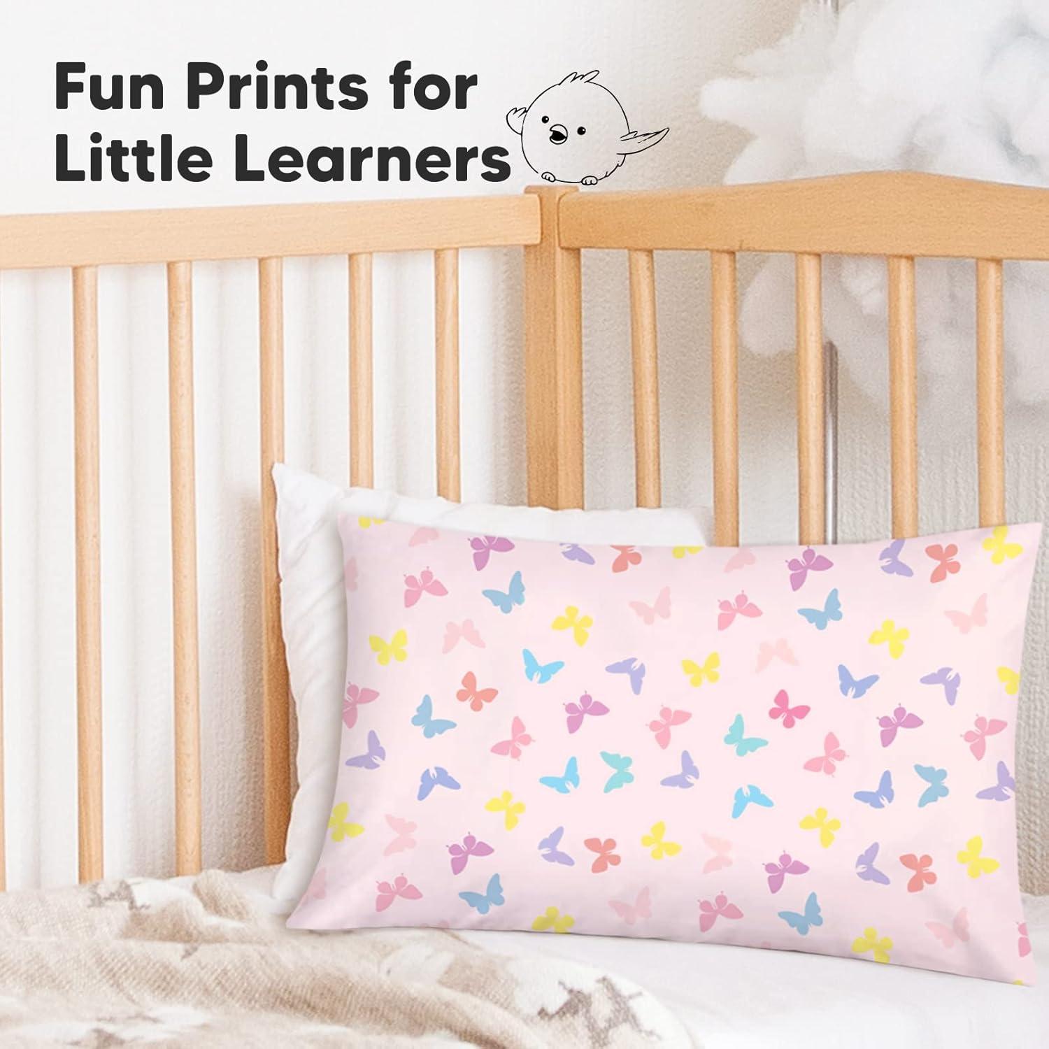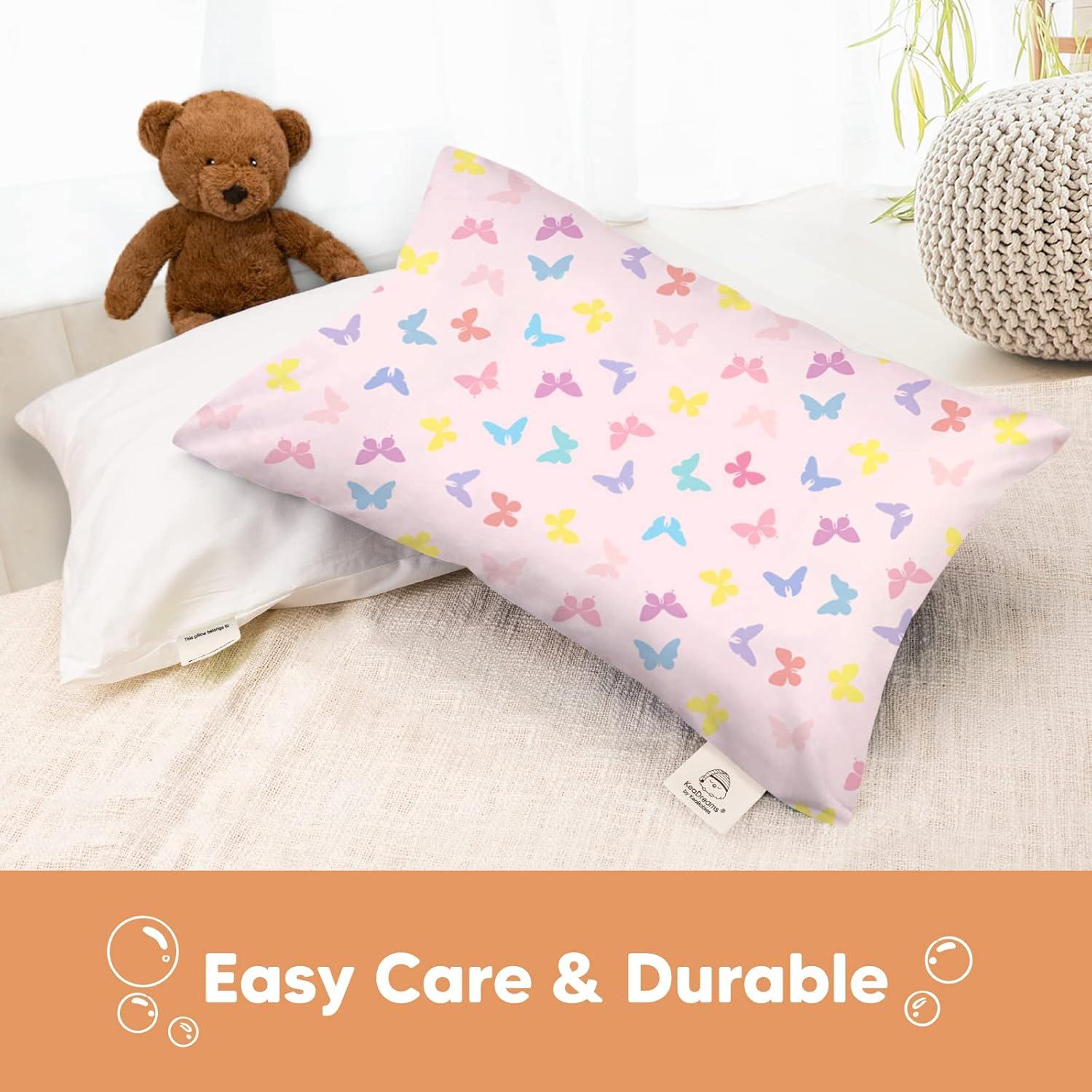 KeaBabies Toddler Pillowcase 13″x18″ – Organic Cotton Toddler Pillowcase for Kids, Boys, Girls, Soft & Durable Cotton Cover for Miniature Sleepy Pillows, Cute Colors, Pillow Sold Separately (Vroom)(Flutter)