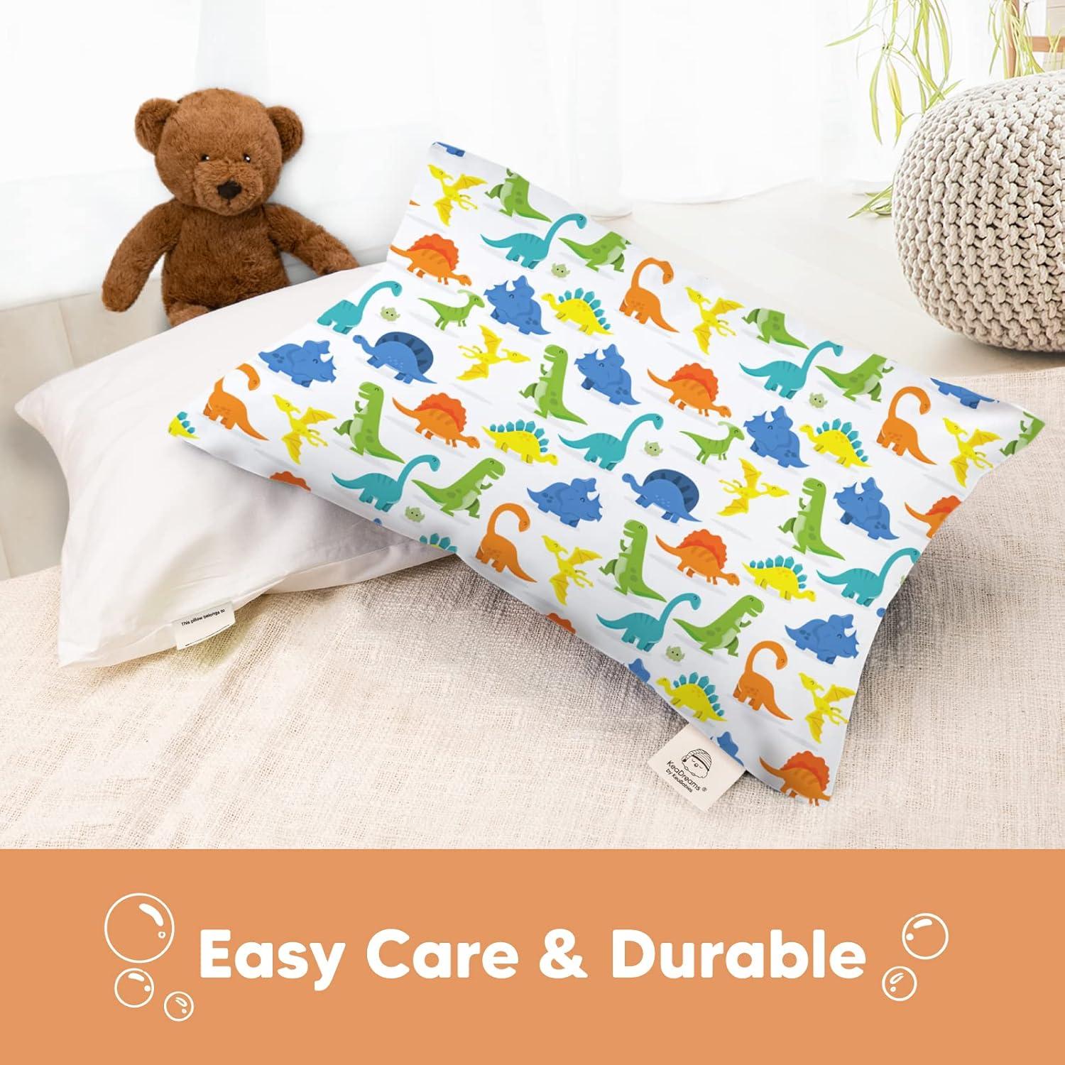 KeaBabies Toddler Pillowcase 13″x18″ – Organic Cotton Toddler Pillowcase for Kids, Boys, Girls, Soft & Durable Cotton Cover for Miniature Sleepy Pillows, Cute Colors, Pillow Sold Separately (Vroom)(Happy Dino)