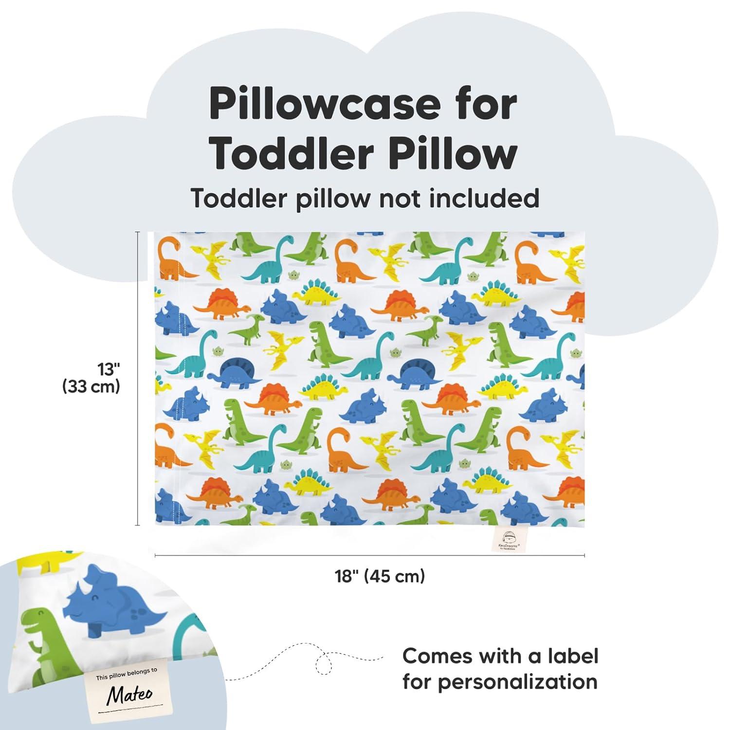 KeaBabies Toddler Pillowcase 13"x18" - Organic Cotton Toddler Pillowcase for Kids, Boys, Girls, Soft & Durable Cotton Cover for Miniature Sleepy Pillows, Cute Colors, Pillow Sold Separately (Vroom)(Happy Dino)