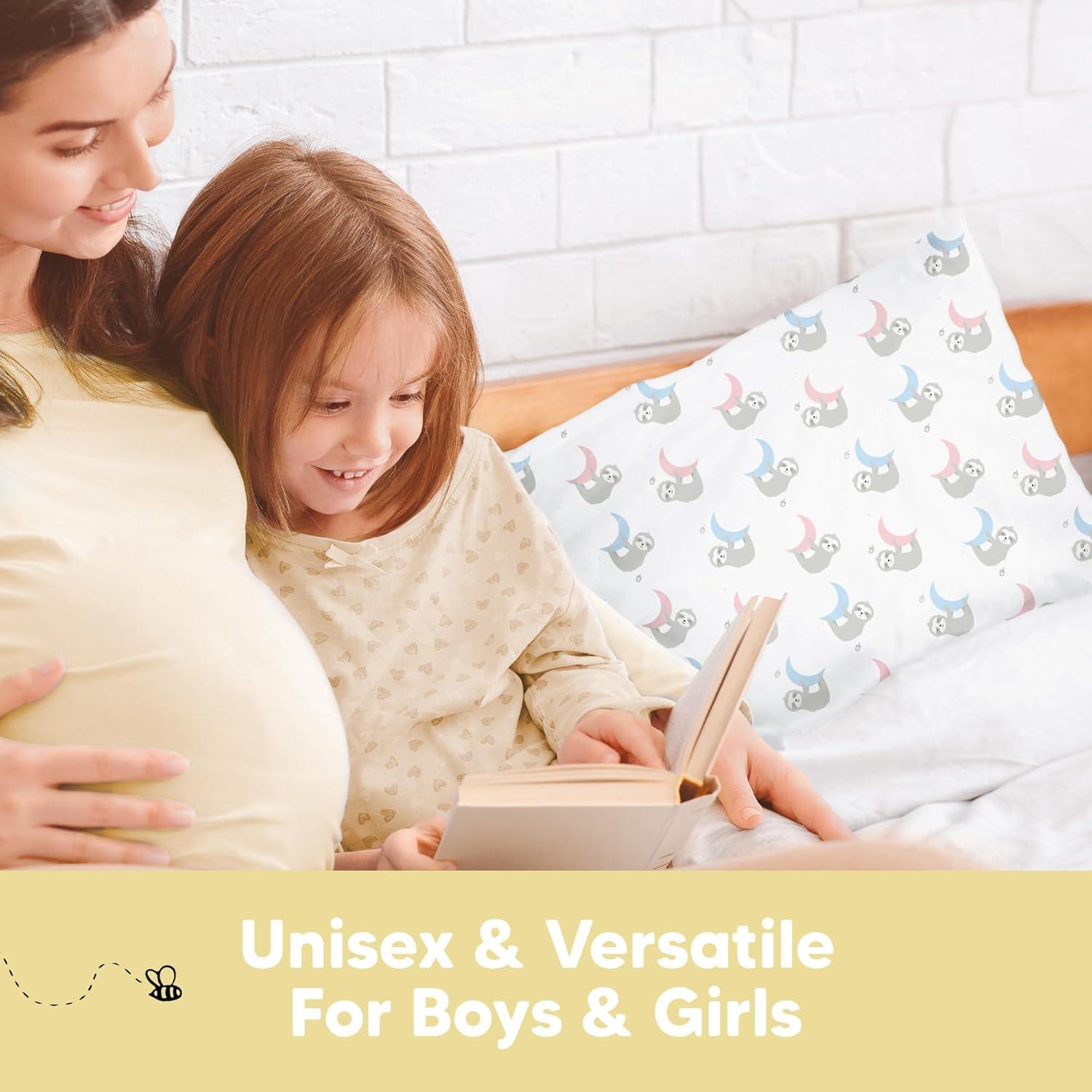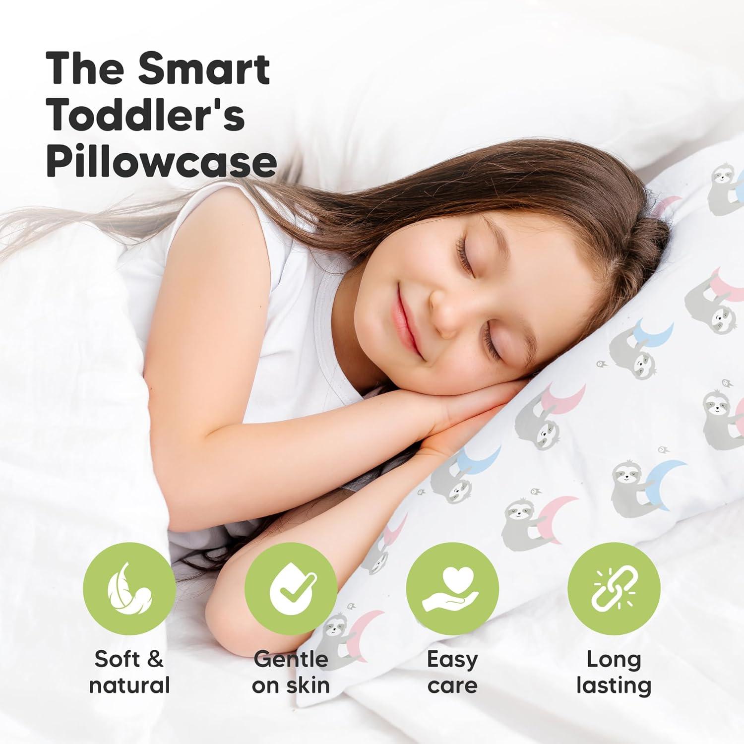 KeaBabies Toddler Pillowcase 13"x18" - Organic Cotton Toddler Pillowcase for Kids, Boys, Girls, Soft & Durable Cotton Cover for Miniature Sleepy Pillows, Cute Colors, Pillow Sold Separately (Vroom)(Moon Sloth)