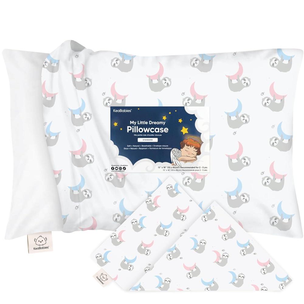 KeaBabies Toddler Pillowcase 13″x18″ – Organic Cotton Toddler Pillowcase for Kids, Boys, Girls, Soft & Durable Cotton Cover for Miniature Sleepy Pillows, Cute Colors, Pillow Sold Separately (Vroom)(Moon Sloth)