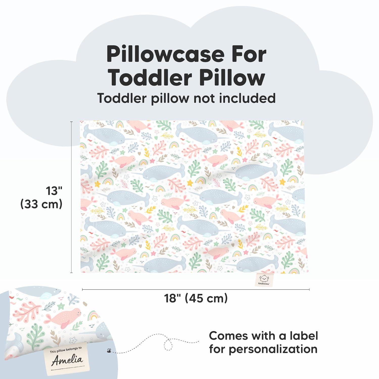 KeaBabies Toddler Pillowcase 13"x18" - Organic Cotton Toddler Pillowcase for Kids, Boys, Girls, Soft & Durable Cotton Cover for Miniature Sleepy Pillows, Cute Colors, Pillow Sold Separately (Vroom)(Narwhal)
