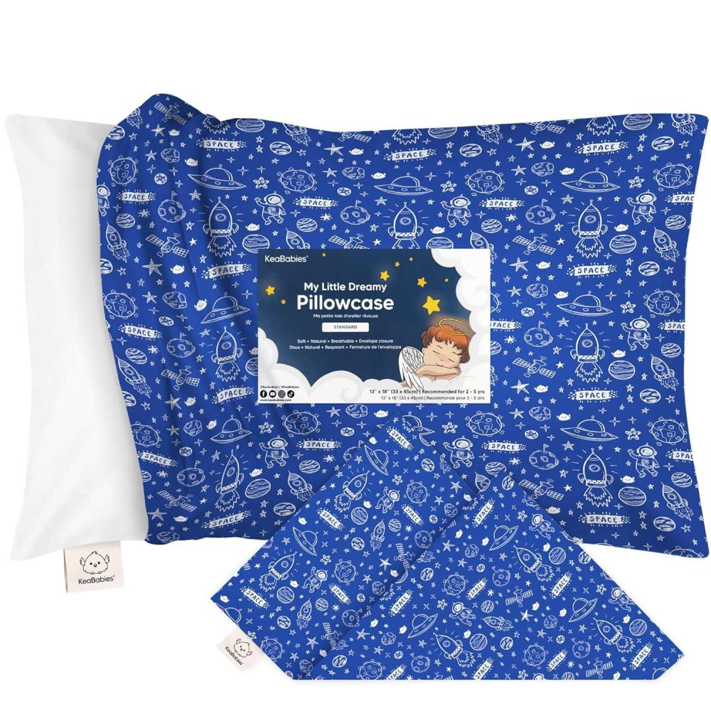 KeaBabies Toddler Pillowcase 13″x18″ – Organic Cotton Toddler Pillowcase for Kids, Boys, Girls, Soft & Durable Cotton Cover for Miniature Sleepy Pillows, Cute Colors, Pillow Sold Separately (Vroom)(Off to Space)