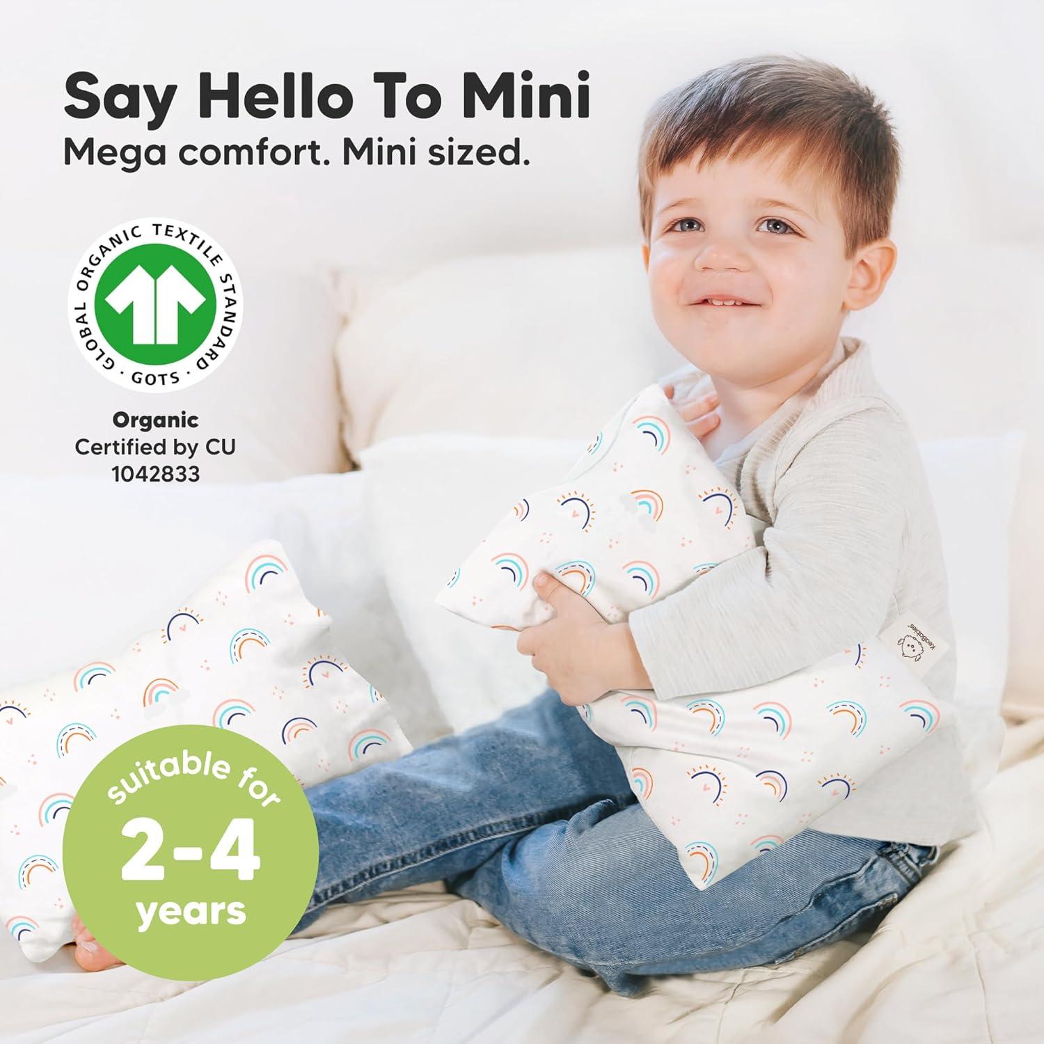 Mini Toddler Pillow with Pillowcase – 9×13 My Little Dreamy Travel Kids Pillow for Sleeping, Toddler Bed, Small, Tiny, Organic Cotton Pillowcase, Soft & Breathable, Kids 2-4 Years Old (Polar)(Jolly Rainbow)