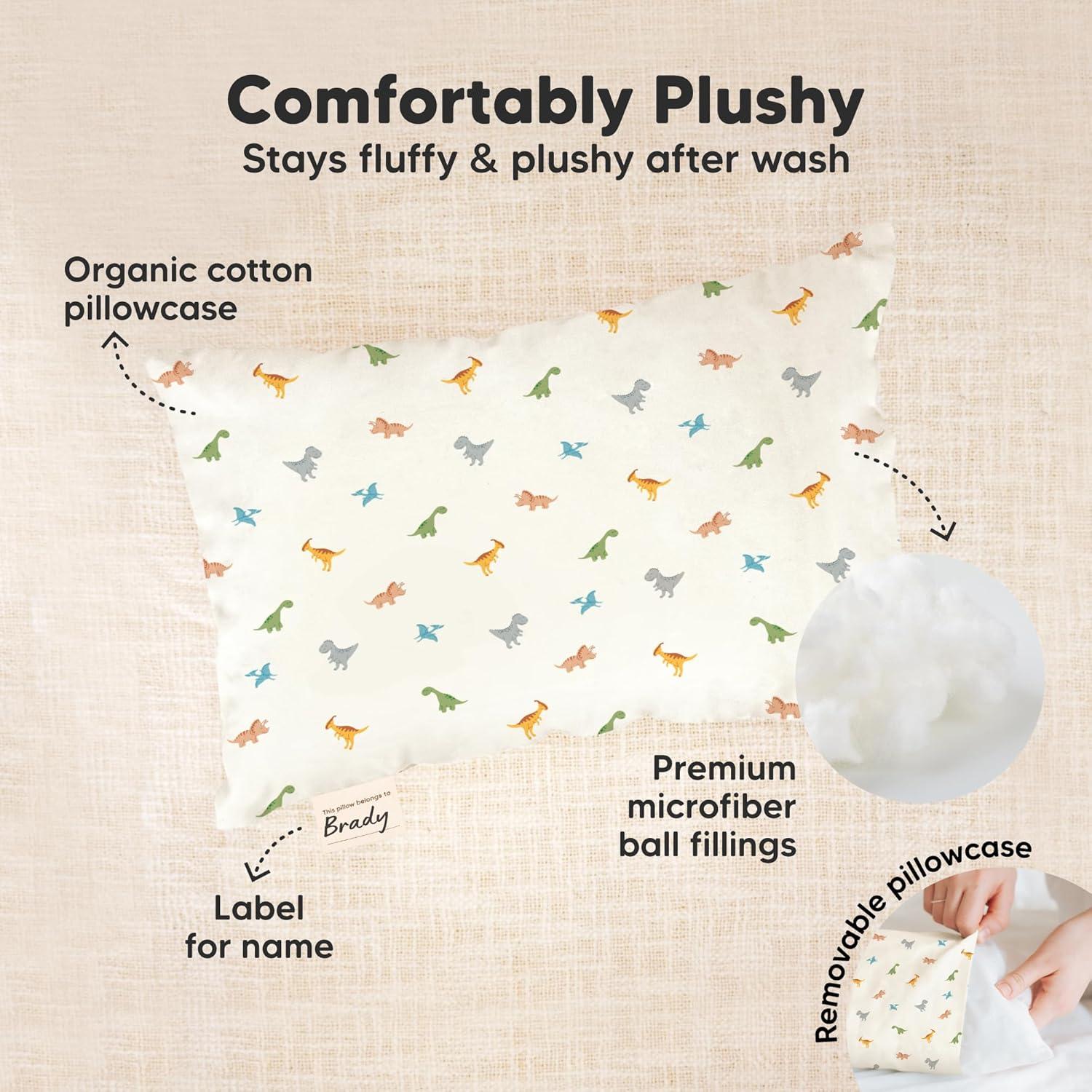 Mini Toddler Pillow with Pillowcase – 9×13 My Little Dreamy Travel Kids Pillow for Sleeping, Toddler Bed, Small, Tiny, Organic Cotton Pillowcase, Soft & Breathable, Kids 2-4 Years Old (Polar)(Roarsome)