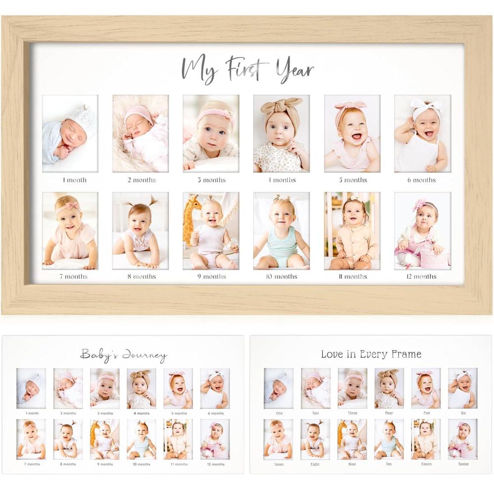 imageMy First Year Photo Frame12 Months Baby Picture Frame for Newborn GirlBoyBaby Shower Gifts KeepsakesMonthly Babys One Year Birthday Milestone1st Nursery Photo Collage Display BoardAlpine WhiteAsh Wood