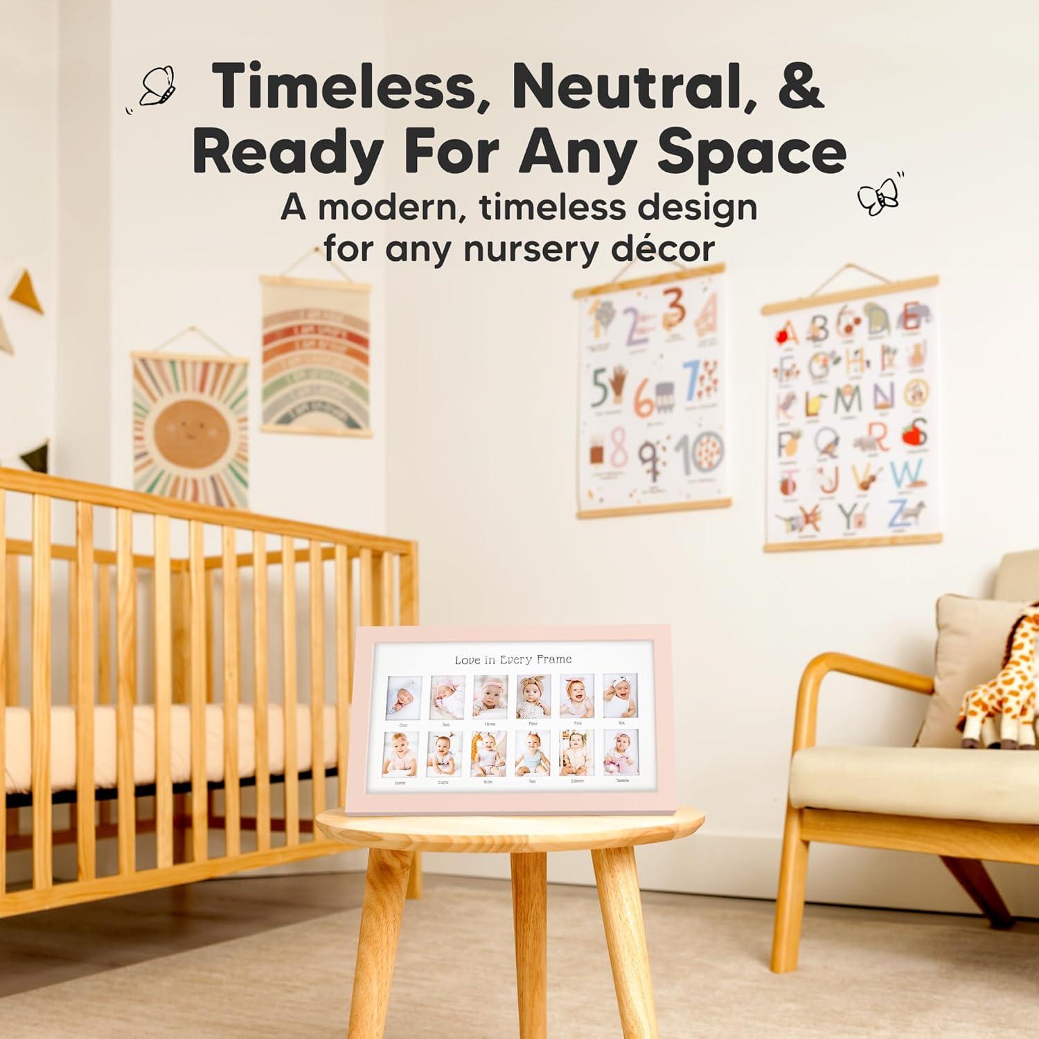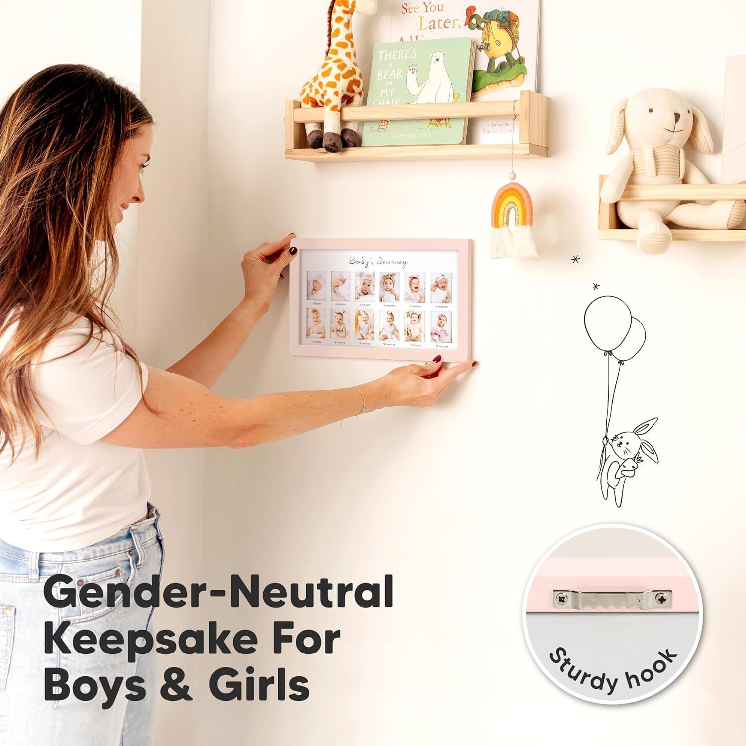 My First Year Photo Frame,12 Months Baby Picture Frame for Newborn Girl,Boy-Baby Shower Gifts Keepsakes,Monthly Baby’s One Year Birthday Milestone,1st Nursery Photo Collage Display Board(Alpine White)(Petal Pink)