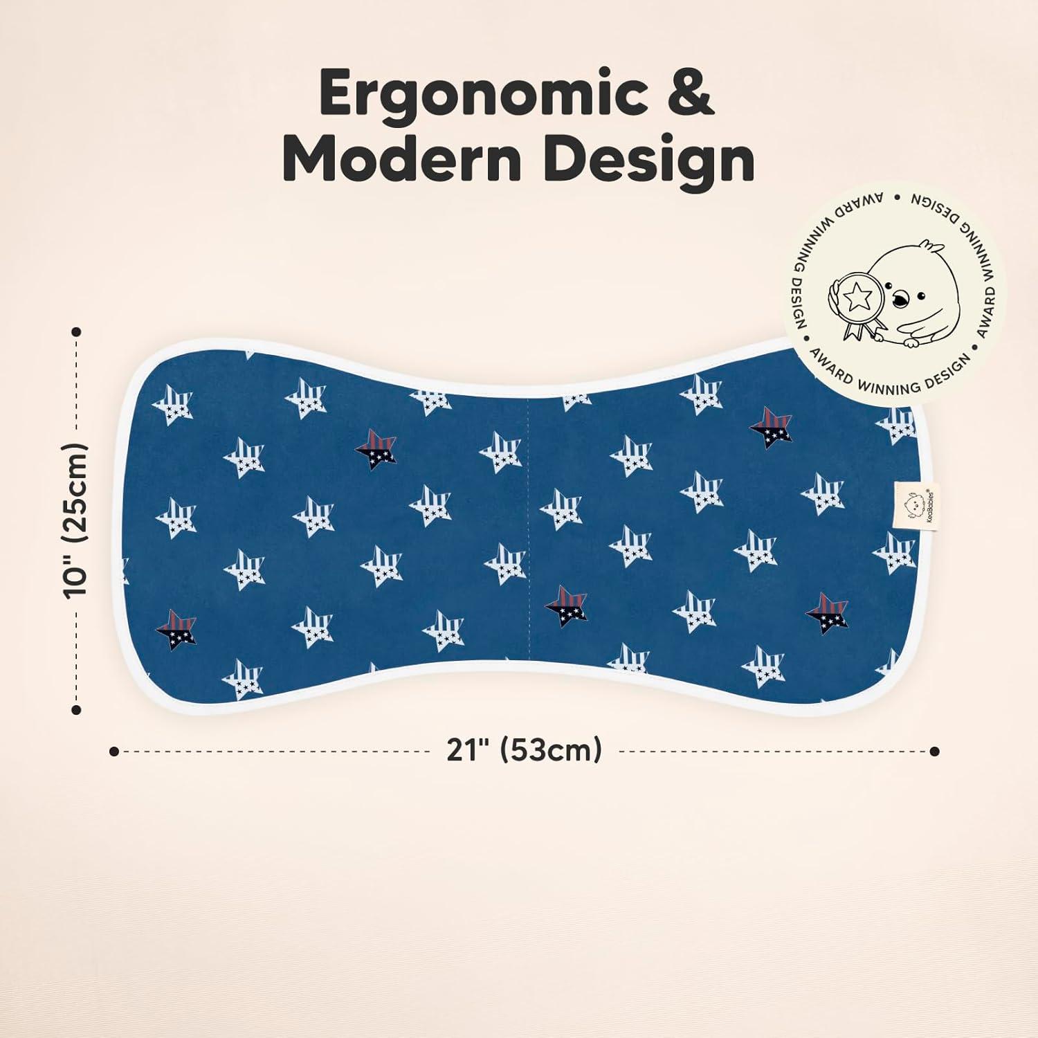 The Figure-8 Full Shoulder Coverage – Our organic baby burp clothes for baby girls and baby boys, sized at 21″ x 10″, are wide enough to cover your shoulders. The unique figure-8 design prevents the burp rags from slipping.