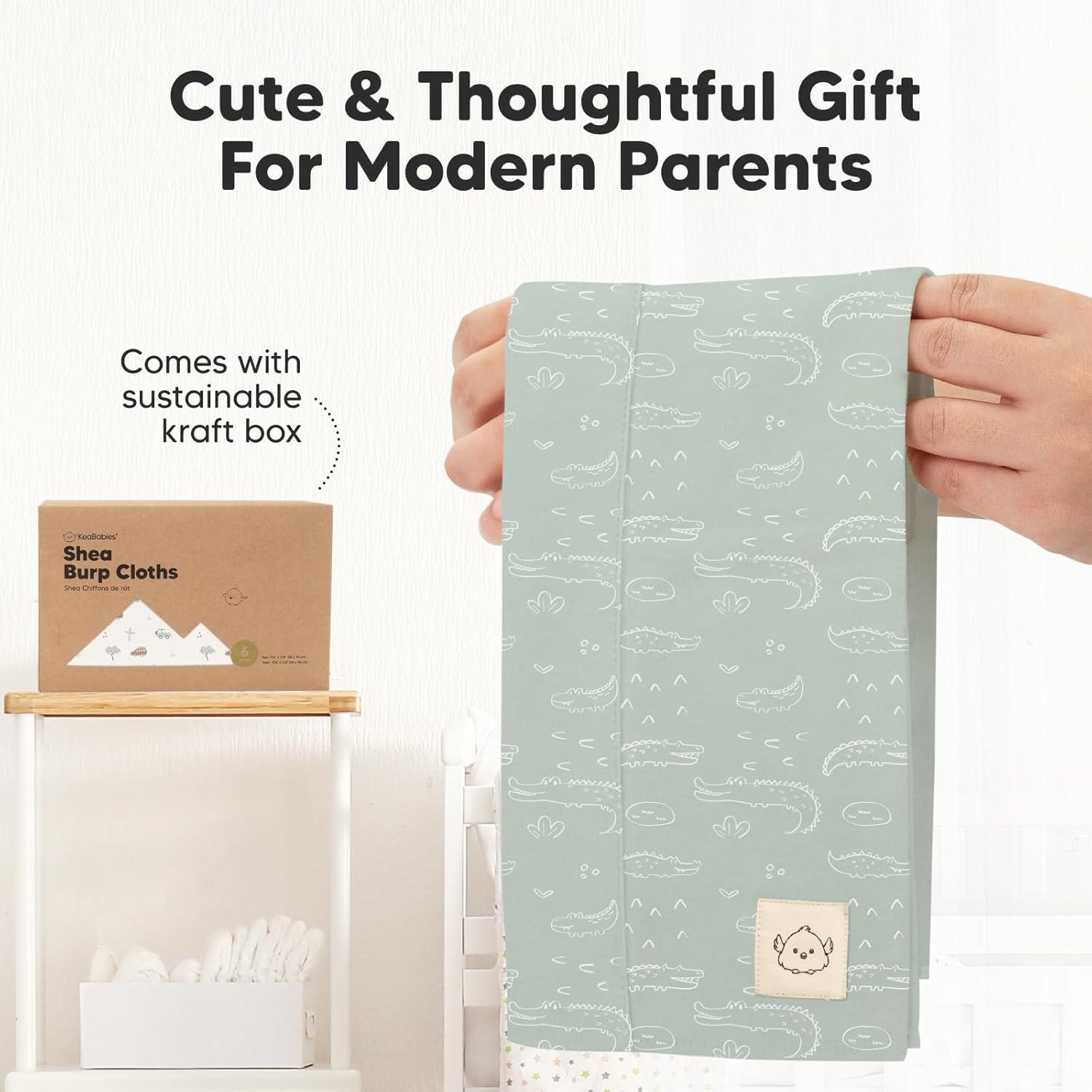 Cute Baby Essentials, Must-Haves for Baby Registry – The gender neutral designs make a perfect baby gift for baby boys and baby girls. Each Shea Burp Cloths set comes with a gift-ready, sustainable kraft gift box.