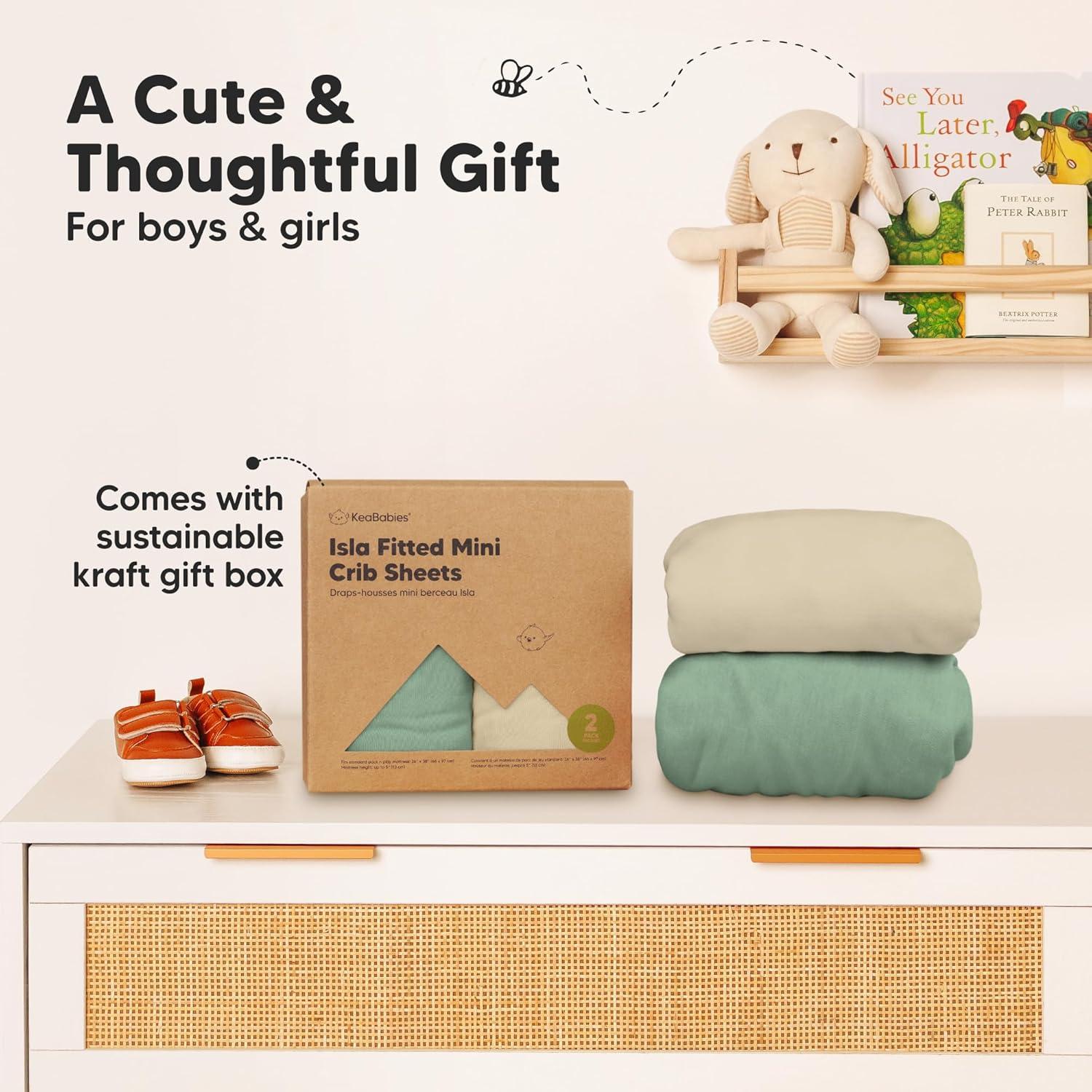 Neutral, Gentle on Skin – The KeaBabies Isla Mini Crib Sheet Fitted is buttery-soft and extra gentle for baby's delicate skin. The neutral designs on these baby-safe, pack n play sheets are suitable for baby boys and girls.
