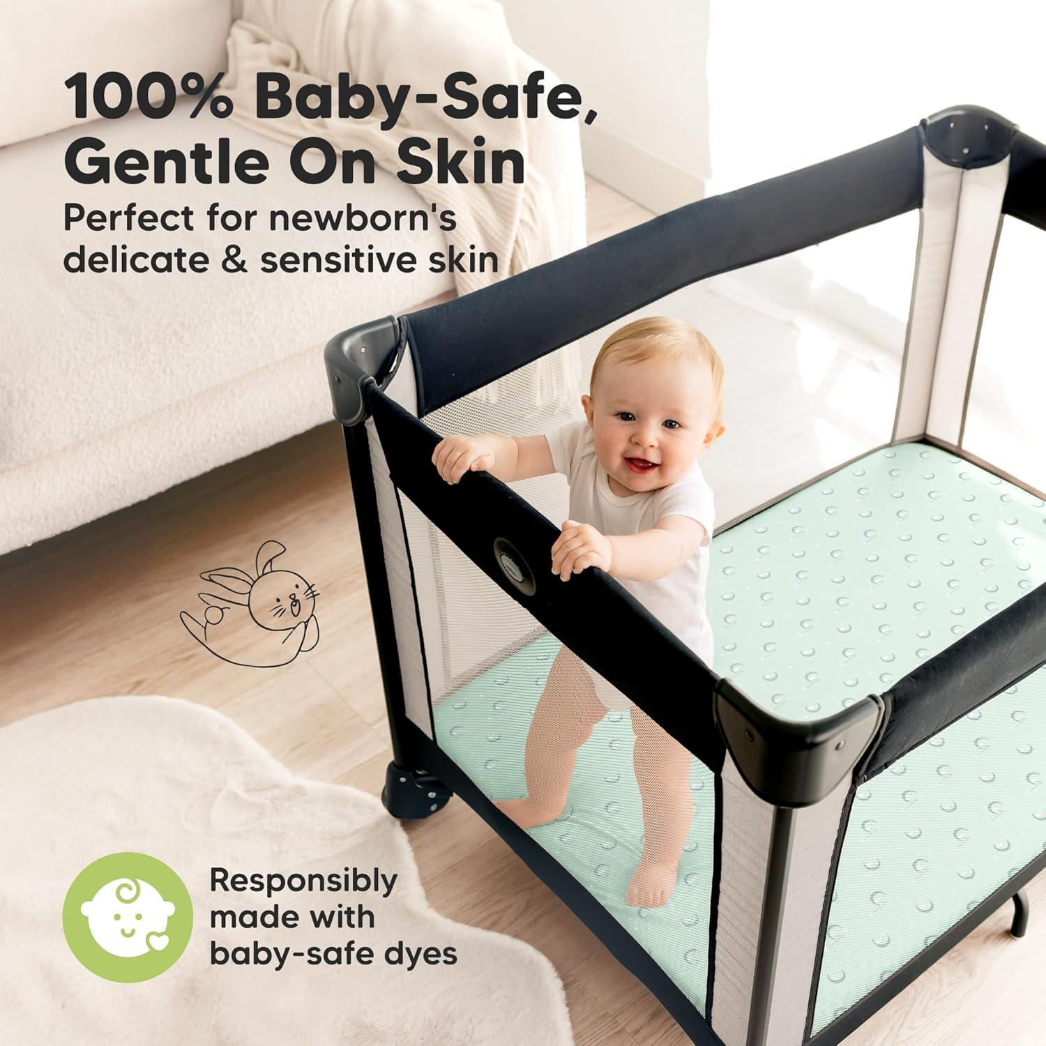 Durable & Lasting – These pack and play sheets are durable, machine-washable, and dryer-friendly, one of the must-have modern baby essentials for newborns, infants, and toddlers.