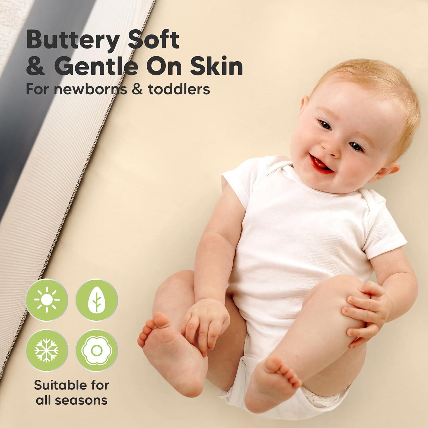 Durable & Lasting – These pack and play sheets are durable, machine-washable, and dryer-friendly, one of the must-have modern baby essentials for newborns, infants, and toddlers.