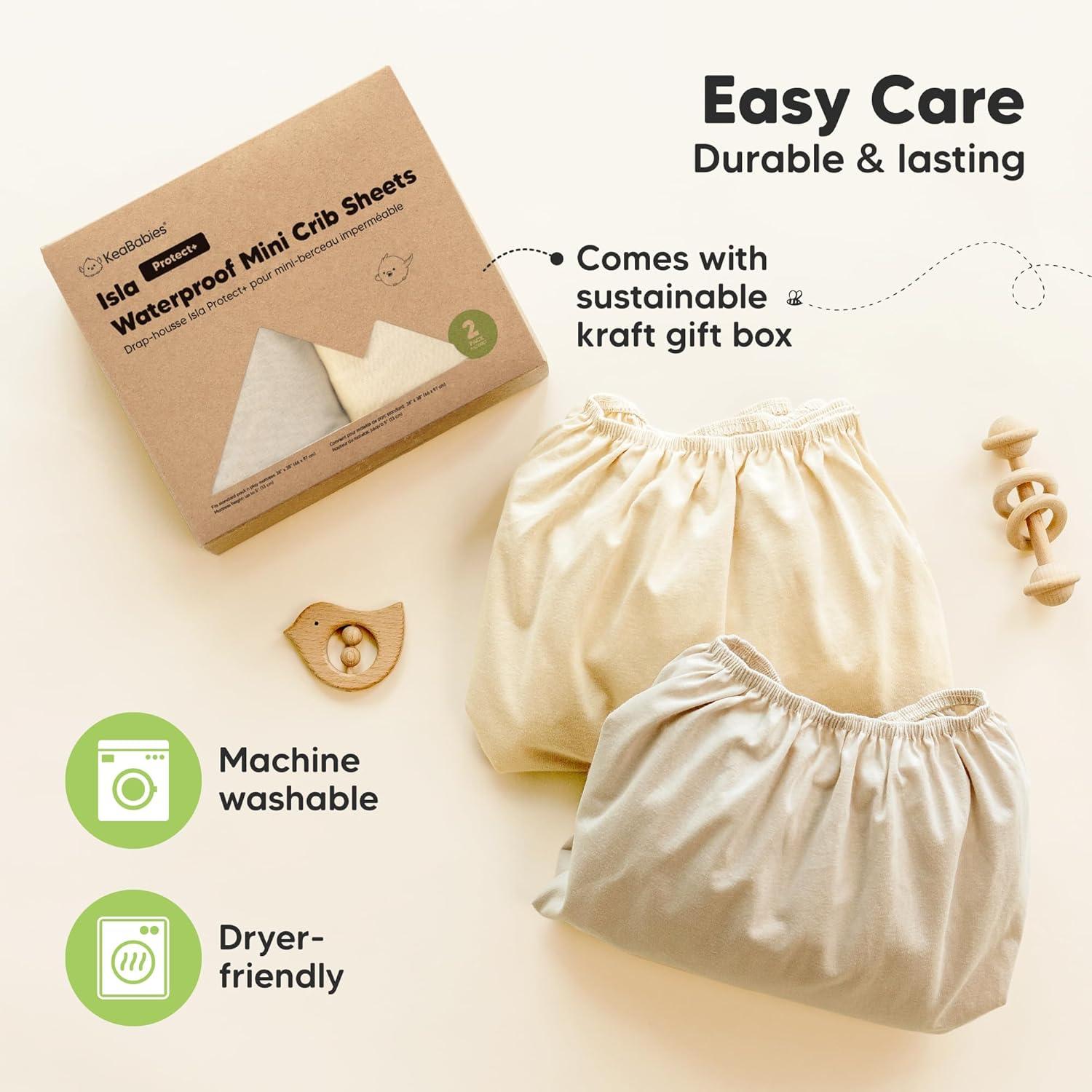 Neutral, Gentle on Skin – The KeaBabies Isla Mini Crib Sheet Fitted is buttery-soft and extra gentle for baby's delicate skin. The neutral designs on these baby-safe, pack n play sheets are suitable for baby boys and girls.