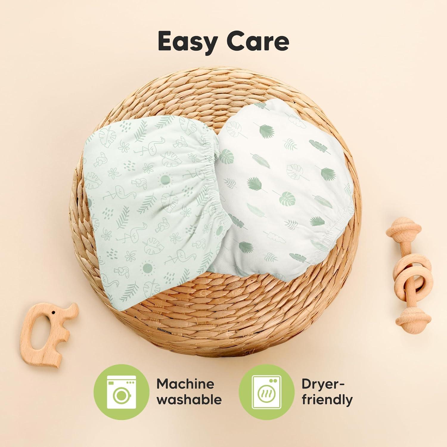 imagePack and Play Sheets Fitted  2Pack Mini Crib Sheets for Pack N Play Mattress 38x26 Soft ampamp Cozy Neutral Toddler Playard Bedding Snug Fitted Mini Baby Crib Mattress Cover Boy Girl ABC LandTropic Oasis