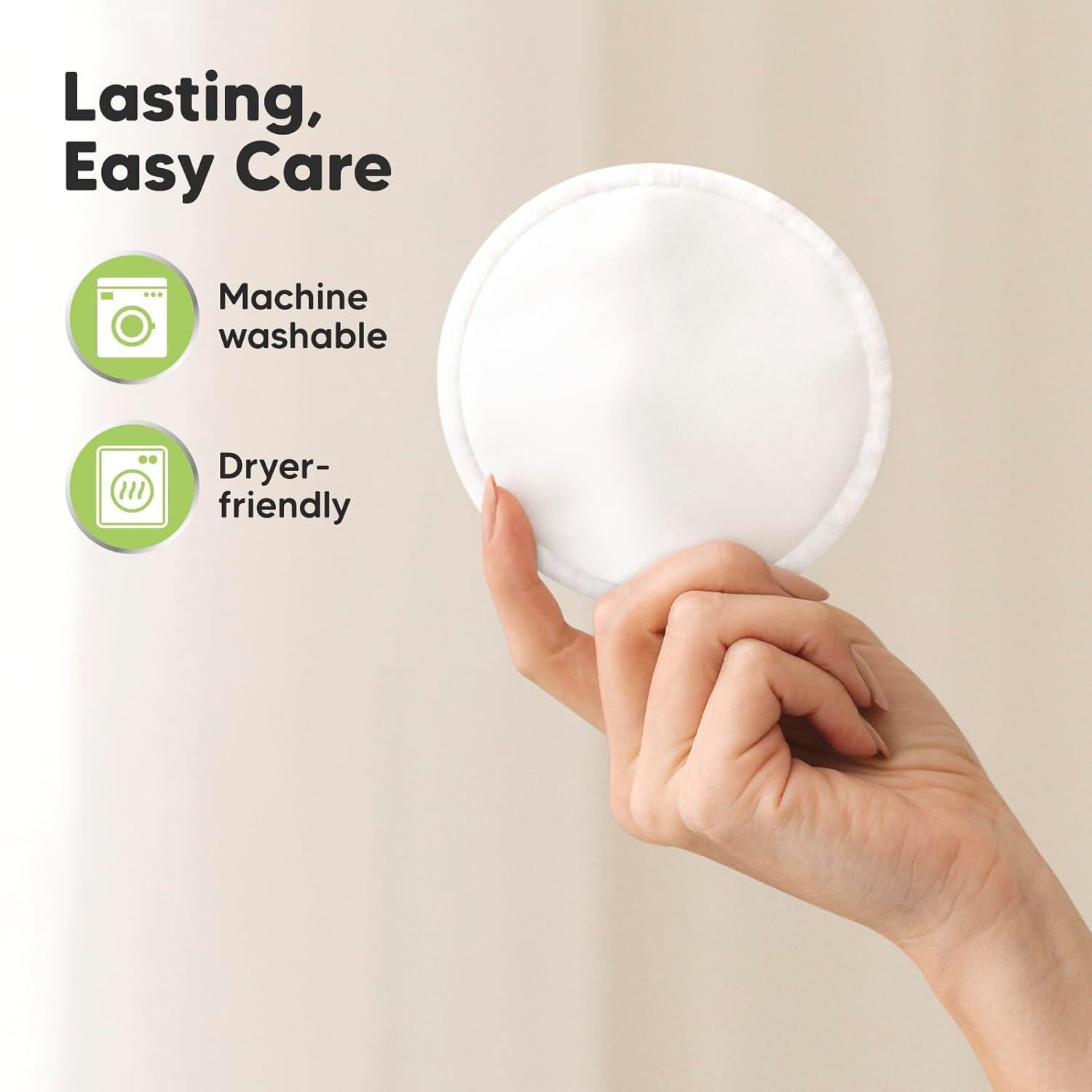 Reusable Nursing Pads for Breastfeeding, 14-Pack – 4-Layers Viscose Derived from Bamboo Nursing Pads, Breastfeeding Pads, Washable Breast Pads, Organic Maternity Pads,Nipple Pads (Soft White, L 4.8″)(Neutrals)