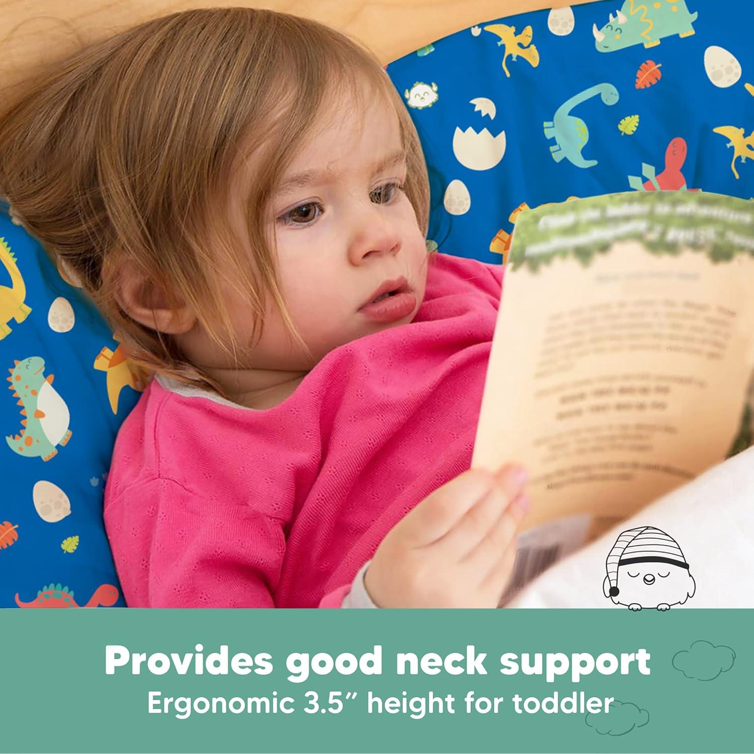 Toddler Pillow with Pillowcase - 13x18 My Little Dreamy Kids Travel Bed Pillows for Sleeping, Organic Cotton Small Pillowcase, Soft & Breathable, Machine Washable, Toddlers 2-5 Years Old (Soft White)(Dinoworld)