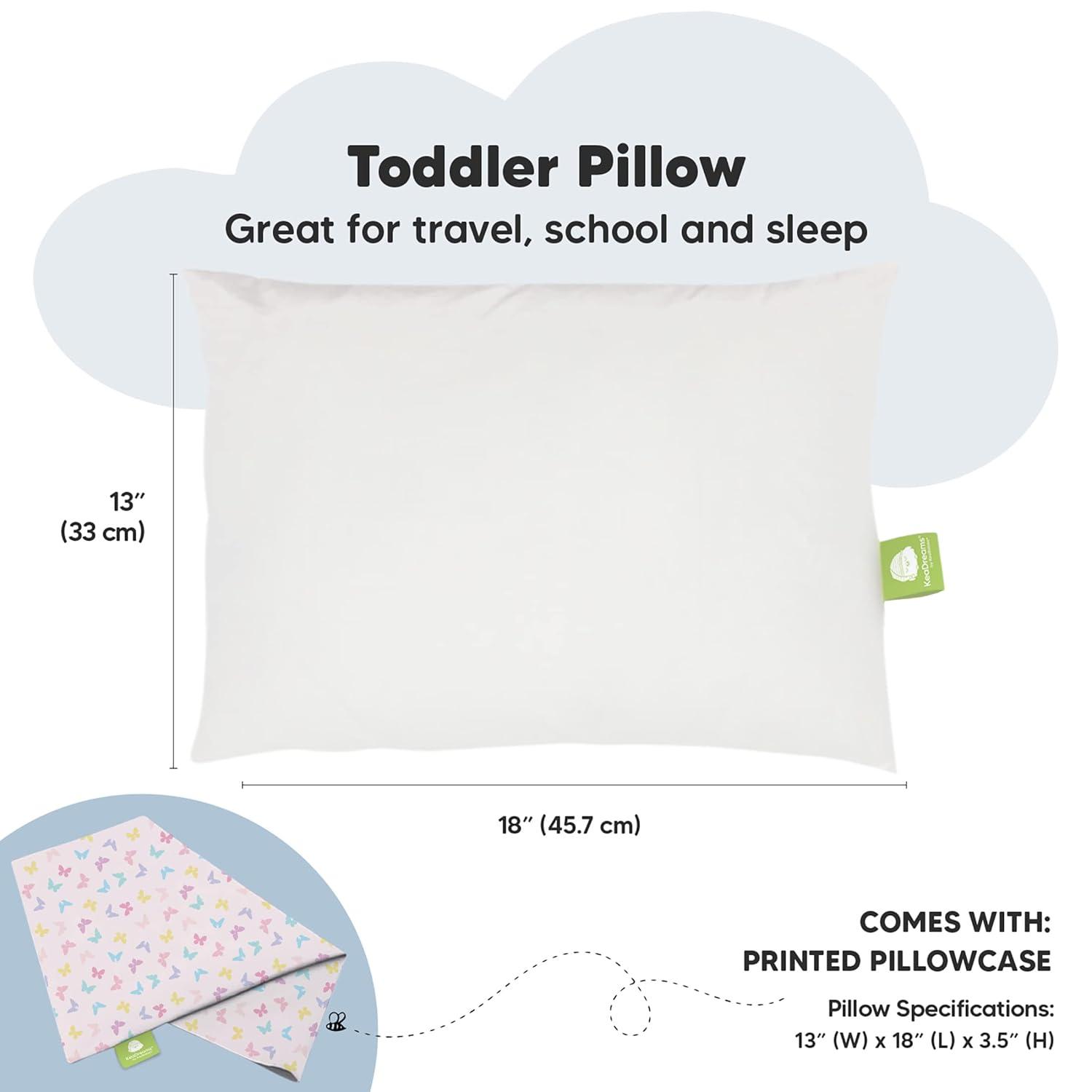 Toddler Pillow with Pillowcase - 13x18 My Little Dreamy Kids Travel Bed Pillows for Sleeping, Organic Cotton Small Pillowcase, Soft & Breathable, Machine Washable, Toddlers 2-5 Years Old (Soft White)(Flutter)