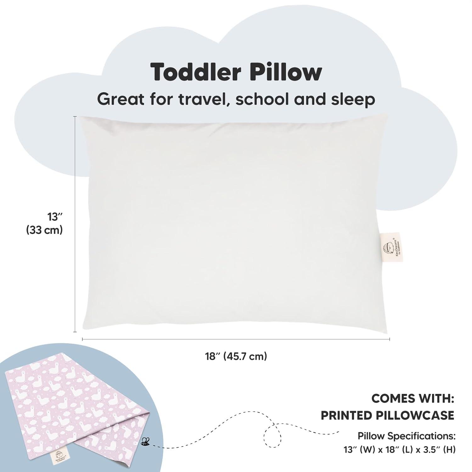 Toddler Pillow with Pillowcase - 13x18 My Little Dreamy Kids Travel Bed Pillows for Sleeping, Organic Cotton Small Pillowcase, Soft & Breathable, Machine Washable, Toddlers 2-5 Years Old (Soft White)(Alpacas)
