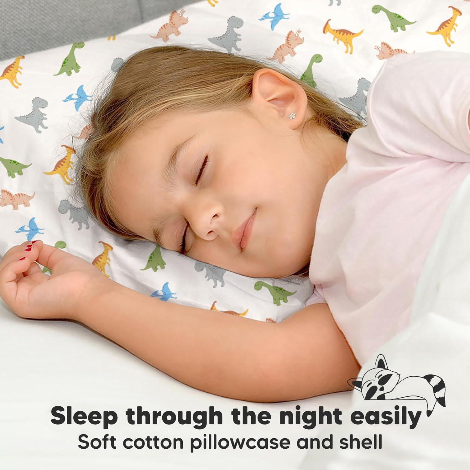 Toddler Pillow with Pillowcase – 13×18 My Little Dreamy Kids Travel Bed Pillows for Sleeping, Organic Cotton Small Pillowcase, Soft & Breathable, Machine Washable, Toddlers 2-5 Years Old (Soft White)(Roarsome)