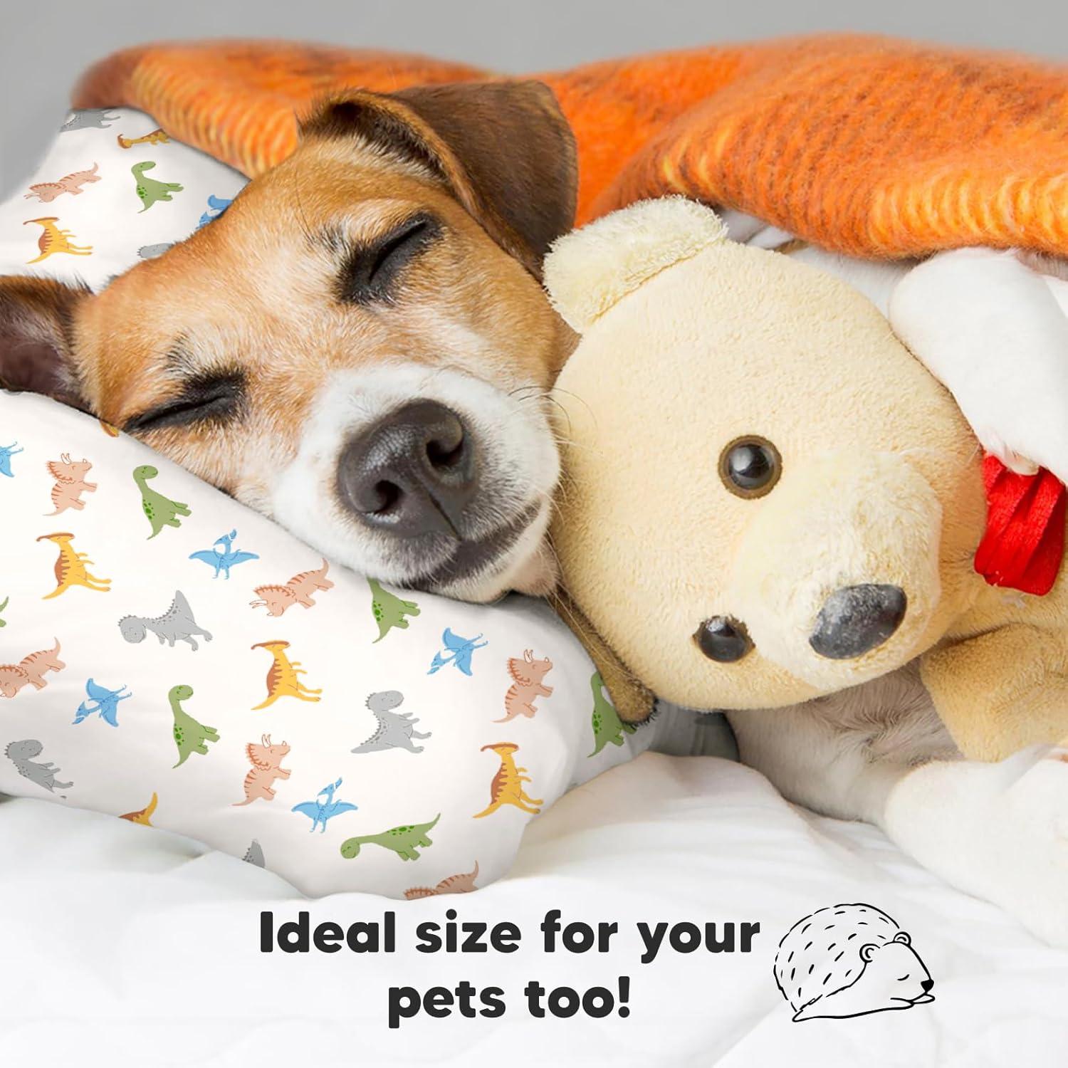Toddler Pillow with Pillowcase - 13x18 My Little Dreamy Kids Travel Bed Pillows for Sleeping, Organic Cotton Small Pillowcase, Soft & Breathable, Machine Washable, Toddlers 2-5 Years Old (Soft White)(Roarsome)
