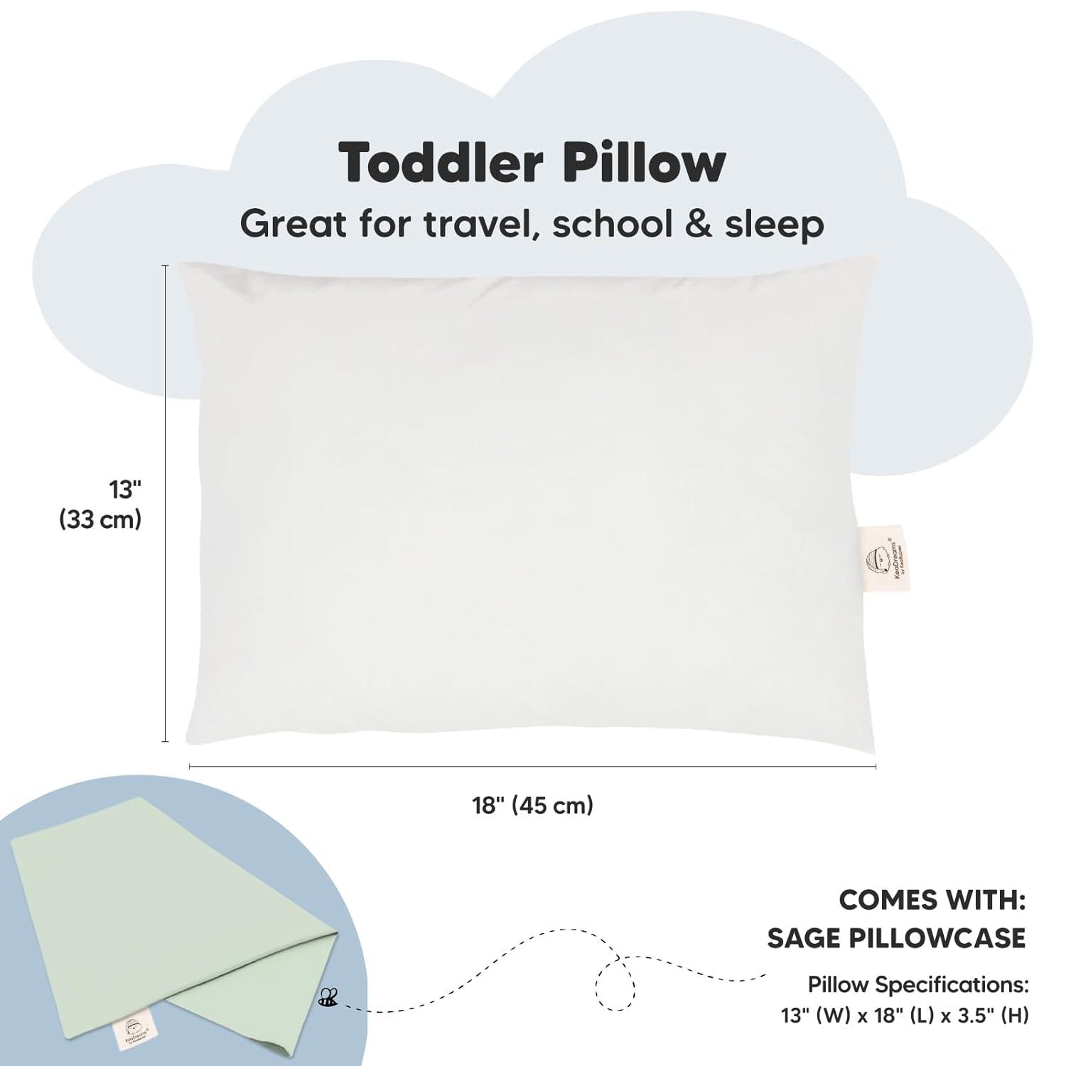 Toddler Pillow with Pillowcase - 13x18 My Little Dreamy Kids Travel Bed Pillows for Sleeping, Organic Cotton Small Pillowcase, Soft & Breathable, Machine Washable, Toddlers 2-5 Years Old (Soft White)(Sage)