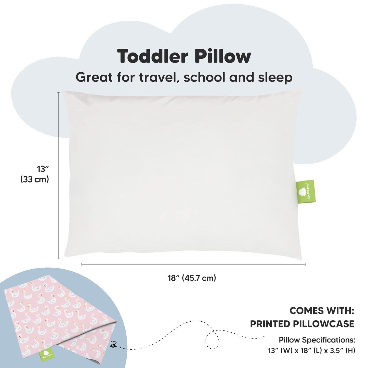 Toddler Pillow with Pillowcase - 13x18 My Little Dreamy Kids Travel Bed Pillows for Sleeping, Organic Cotton Small Pillowcase, Soft & Breathable, Machine Washable, Toddlers 2-5 Years Old (Soft White)(Swan Lake)