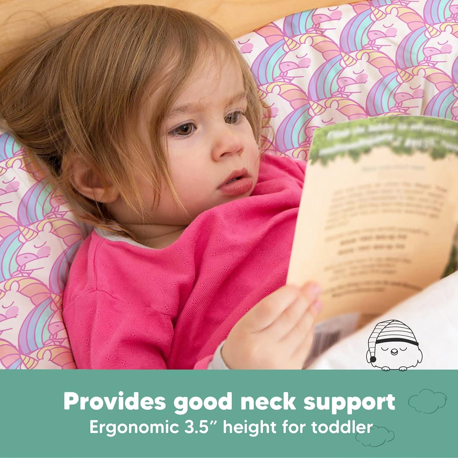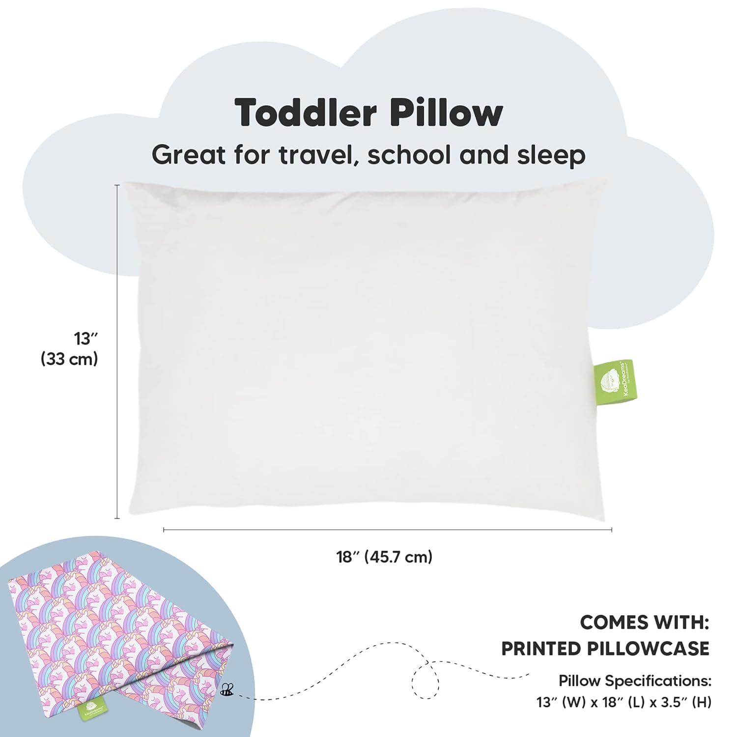 Toddler Pillow with Pillowcase - 13x18 My Little Dreamy Kids Travel Bed Pillows for Sleeping, Organic Cotton Small Pillowcase, Soft & Breathable, Machine Washable, Toddlers 2-5 Years Old (Soft White)(Unicorn)