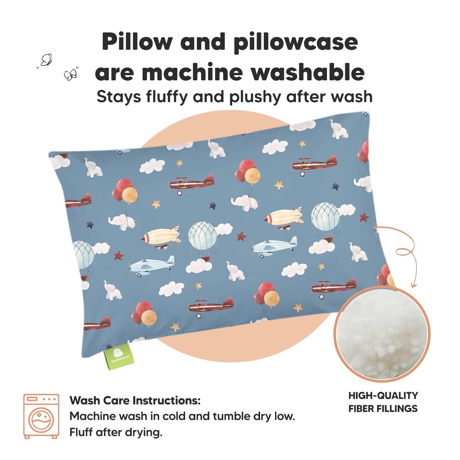 Toddler Pillow with Pillowcase - 13x18 My Little Dreamy Kids Travel Bed Pillows for Sleeping, Organic Cotton Small Pillowcase, Soft & Breathable, Machine Washable, Toddlers 2-5 Years Old (Soft White)(Up & Away)