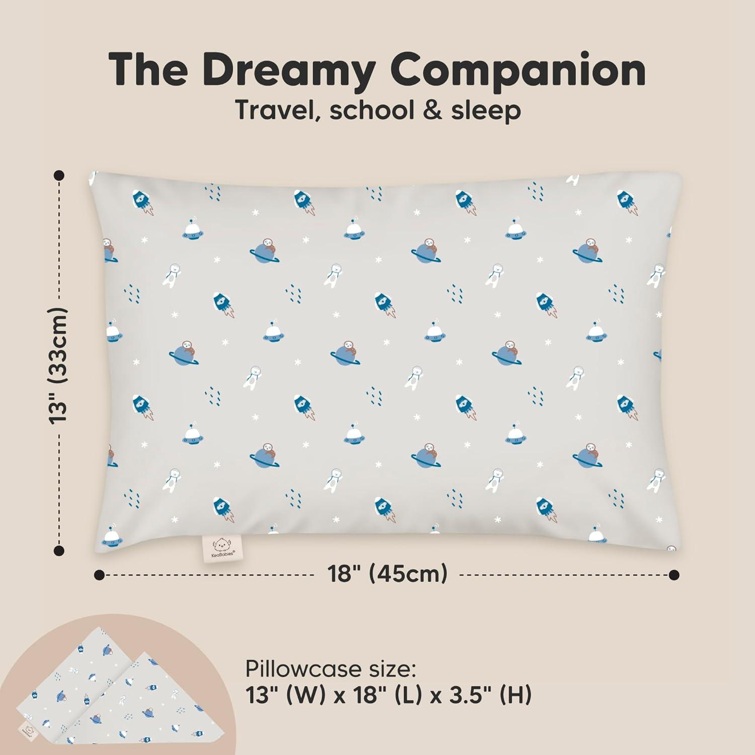 13″x18″ Ergonomically Designed Toddler Pillow with Pillowcase – Highly rated by parents around the world, KeaBabies My Little Dreamy Pillow, is designed to provide toddlers, kids with comfortable spinal support for sleep and travel.
